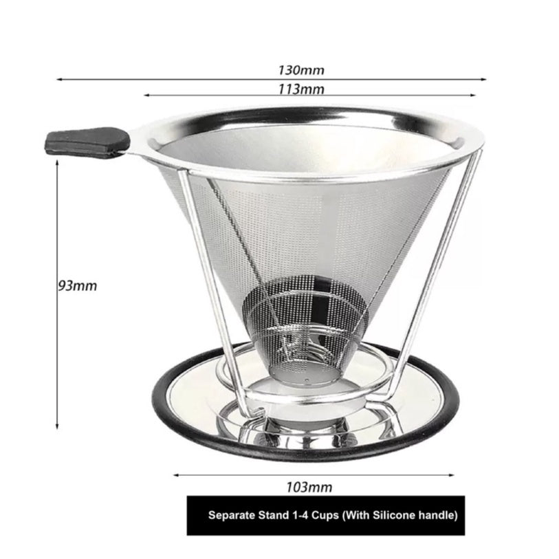 (Ready Stock)Coffee Filter Dripper V60 Stainless Steel Reusable Double Layer Mesh Paperless