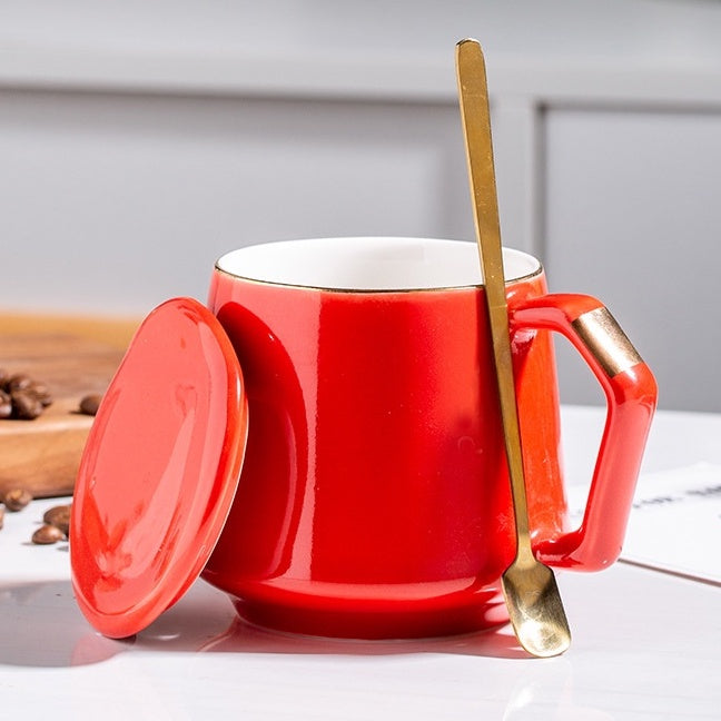 (READY STOCK)Coffee Tea Mug With Lid And Spoon Ceramic Creative Nordic Style 360ml